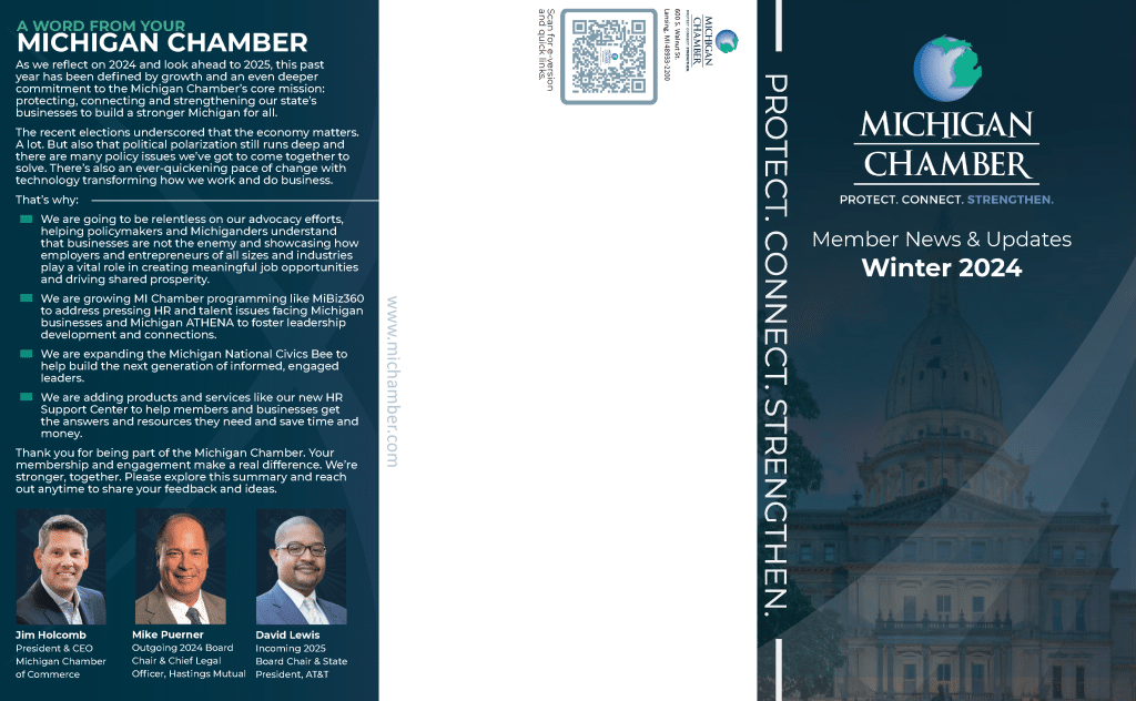 The MI Chamber’s Business Advocacy team tirelessly represents members and supports free enterprise, tackling the anti-business policies and advancing the opportunities that ensure a resilient, robust business climate and economy. We make sure your voice and interests are heard in the legislative, political and legal arenas.
