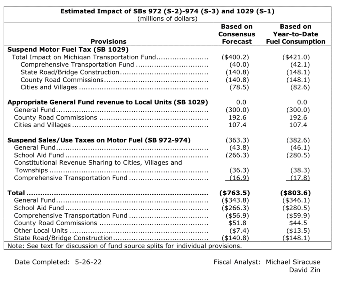 The Michigan Senate overwhelmingly passed Senate Bills 1029, 972, 973, and 974, which would ultimately eliminate the motor fuel tax, as well as sales and use tax on gas, between June 15 and September 15 of this year.